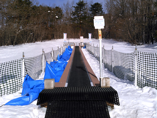 動く歩道で楽々そり遊び!
